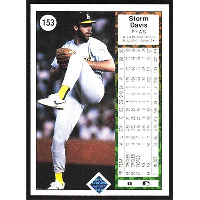 This is a 1989 Upper Deck Storm Davis baseball card. The card is #153 and pictures show condition.