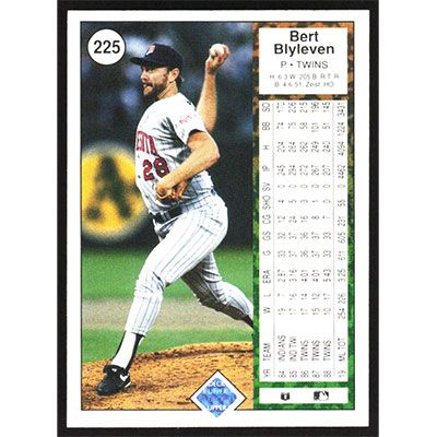 This is a 1989 Upper Deck Bert Blyleven baseball card. The card is #225 and pictures show condition.