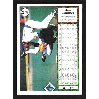 This is a 1989 Upper Deck Jim Gantner baseball card. The card is #274 and pictures show condition.
