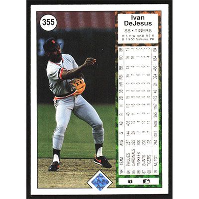 This is a 1989 Upper Deck Ivan DeJesus baseball card. The card is #355 and pictures show condition.