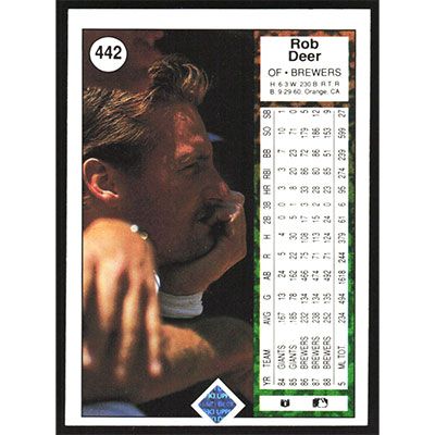 This is a 1989 Upper Deck Rob Deer baseball card. The card is #442 and pictures show condition.