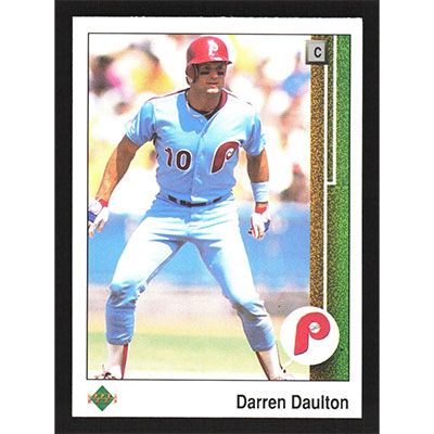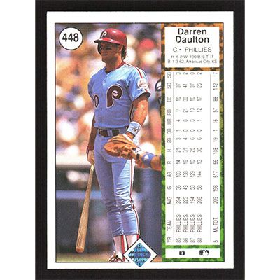This is a 1989 Upper Deck Darren Daulton baseball card. The card is #448 and pictures show condition.