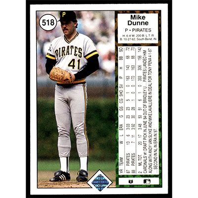 This is a 1989 Upper Deck Mike Dunne baseball card. The card is #518 and pictures show condition.
