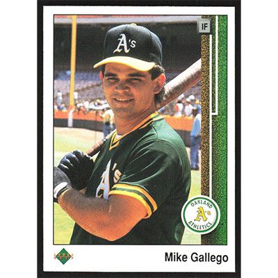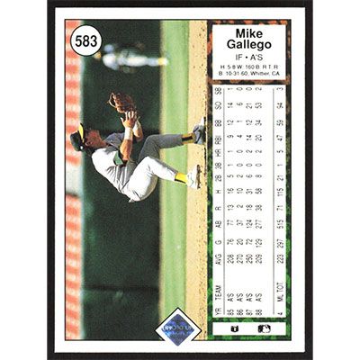 This is a 1989 Upper Deck Mike Gallego baseball card. The card is #583 and pictures show condition.