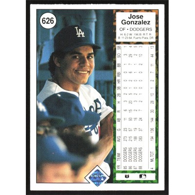 This is a 1989 Upper Deck Jose Gonzalez baseball card. The card is #626 and pictures show condition.