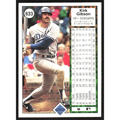 This is a 1989 Upper Deck Kirk Gibson baseball card. The card is #633 and pictures show condition.