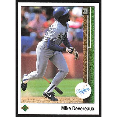 This is a 1989 Upper Deck Mike Devereaux baseball card. The card is #68 and pictures show condition.
