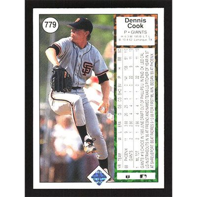 This is a 1989 Upper Deck Dennis Cook baseball card. The card is #779 and pictures show condition.