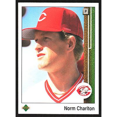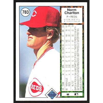 This is a 1989 Upper Deck Norm Charlton baseball card. The card is #783 and pictures show condition.