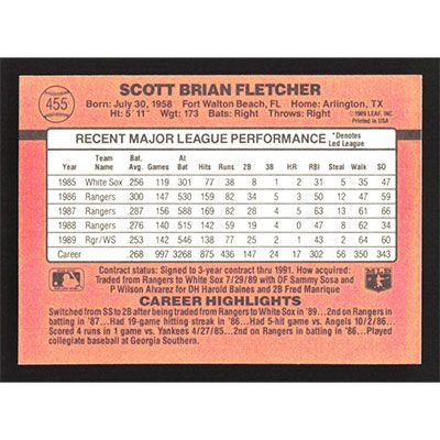 This is a 1990 Donruss Scott Fletcher baseball card. The card is #455 and pictures show condition.