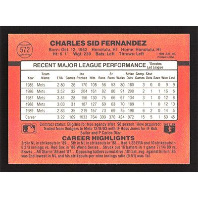 This is a 1990 Donruss Sid Fernandez baseball card. The card is #572 and pictures show condition.