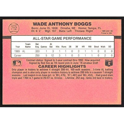 This is a 1990 Donruss Wade Boggs All-Star All-Star Game Performance baseball card. The card is #712B and pictures show condition. Team(s): Boston Red Sox