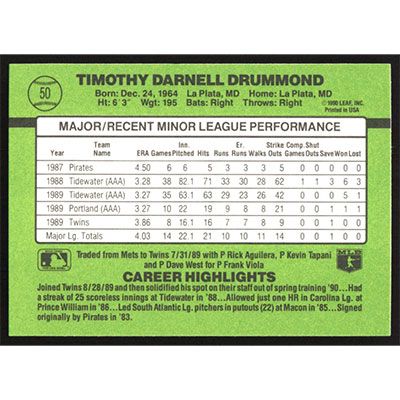 This is a 1990 Donruss Rookies Tim Drummond baseball card. The card is #50 and pictures show condition.