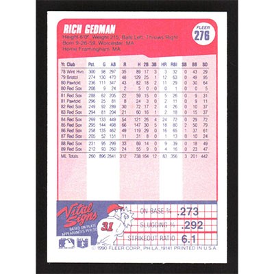 This is a 1990 Fleer Rich Gedman baseball card. The card is #276 and pictures show condition.