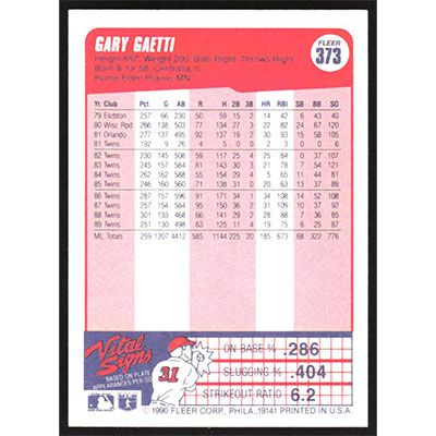 This is a 1990 Fleer Gary Gaetti baseball card. The card is #373 and pictures show condition.