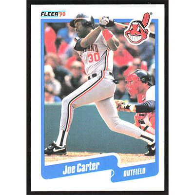 This is a 1990 Fleer Joe Carter baseball card. The card is #489 and pictures show condition.