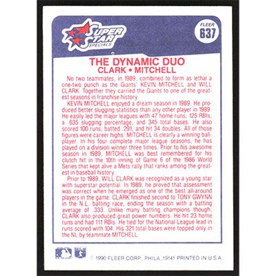 This is a 1990 Fleer Will Clark and Kevin Mitchell Super Star Specials baseball card. The card is #637 and pictures show condition. Team(s): San Francisco Giants