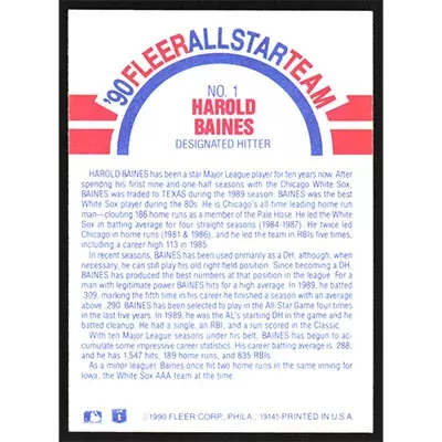 This is a 1990 Fleer All-Stars Harold Baines baseball card. The card is #1 and pictures show condition.