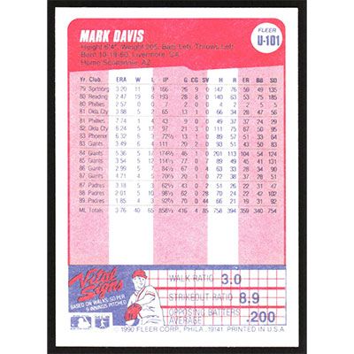 This is a 1990 Fleer Update Mark Davis baseball card. The card is #U-101 and pictures show condition.