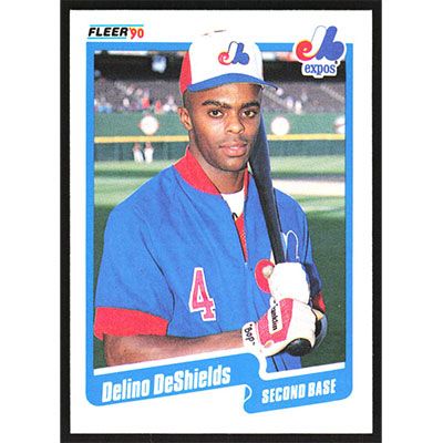 This is a 1990 Fleer Update Delino DeShields baseball card. The card is #U-27 and pictures show condition.