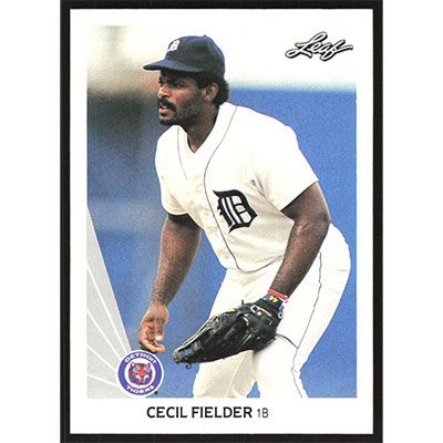 This is a 1990 Leaf Cecil Fielder baseball card. The card is #165 and pictures show condition.