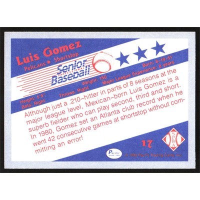 This is a 1990 Pacific Senior League Luis Gomez baseball card. The card is #17 and pictures show condition.