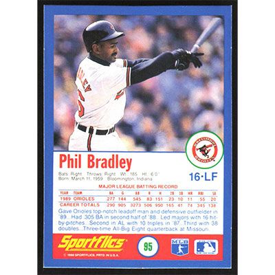 This is a 1990 Sportflics Phil Bradley baseball card. The card is #95 and pictures show condition.