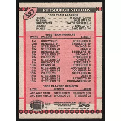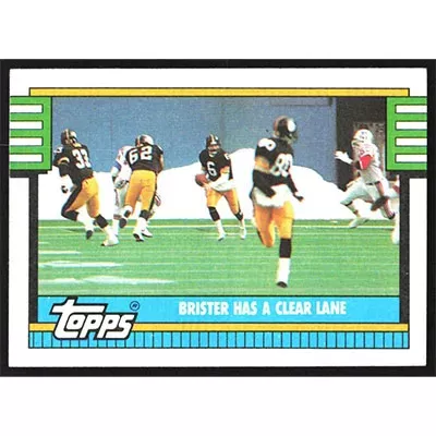 This is a 1990 Topps Steelers Team Leaders Brister Has A Clear Lane football card. The card is #527 and pictures show condition. Team(s): Pittsburgh Steelers