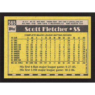 This is a 1990 Topps Scott Fletcher baseball card. The card is #565 and pictures show condition.