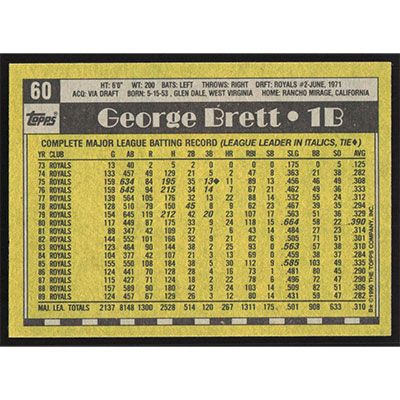 This is a 1990 Topps George Brett baseball card. The card is #60 and pictures show condition.