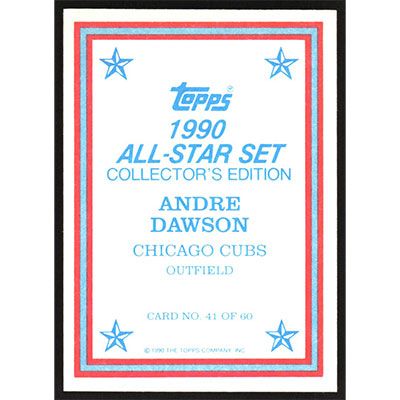 This is a 1990 Topps Glossy Send-Ins Andre Dawson baseball card. The card is #41 and pictures show condition.