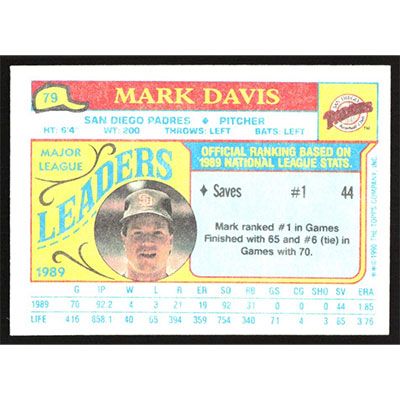 This is a 1990 Topps Mini Leaders Mark Davis baseball card. The card is #79 and pictures show condition.