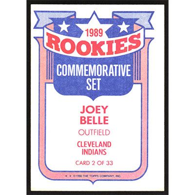 This is a 1990 Topps Rookies Joey Belle baseball card. The card is #2 and pictures show condition.