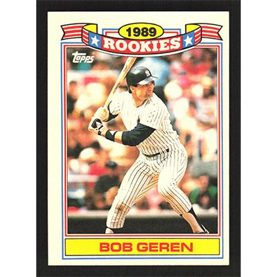 This is a 1990 Topps Rookies Bob Geren baseball card. The card is #9 and pictures show condition.