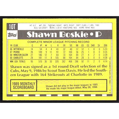 This is a 1990 Topps Traded Shawn Boskie baseball card. The card is #10T and pictures show condition.