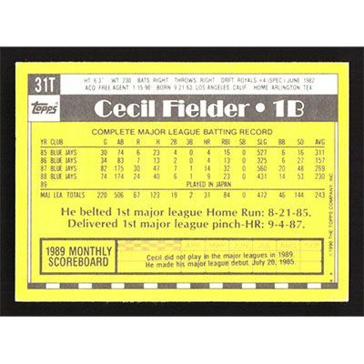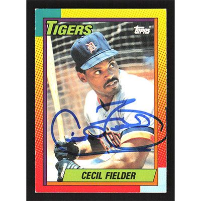 This is a 1990 Topps Traded Cecil Fielder autographed baseball card. This card has been signed, in blue, by Cecil Fielder, and is guaranteed authentic by Ballcardz.com. The card is #31T and pictures show condition.