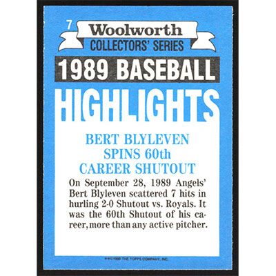 This is a 1990 Topps Woolworth's Topps Bert Blyleven baseball card. The card is #7 and pictures show condition.