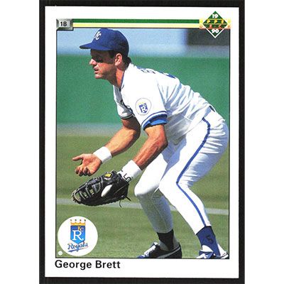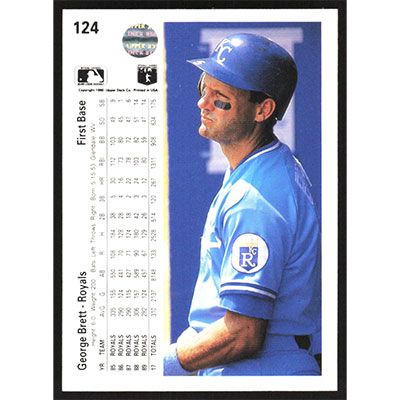 This is a 1990 Upper Deck George Brett baseball card. The card is #124 and pictures show condition.