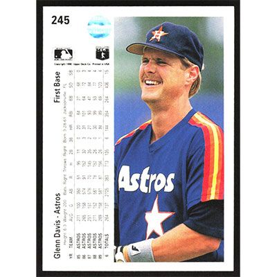 This is a 1990 Upper Deck Glenn Davis baseball card. The card is #245 and pictures show condition.