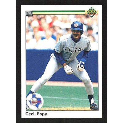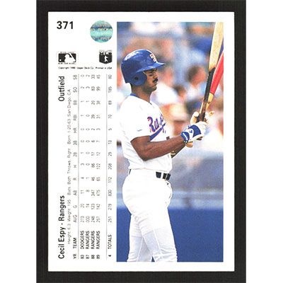 This is a 1990 Upper Deck Cecil Espy baseball card. The card is #371 and pictures show condition.