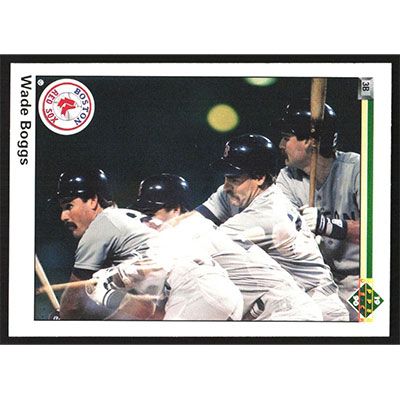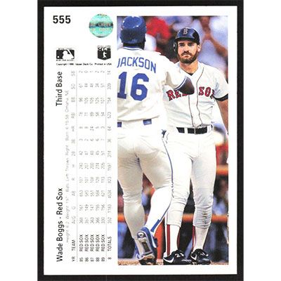 This is a 1990 Upper Deck Wade Boggs baseball card. The card is #555 and pictures show condition.