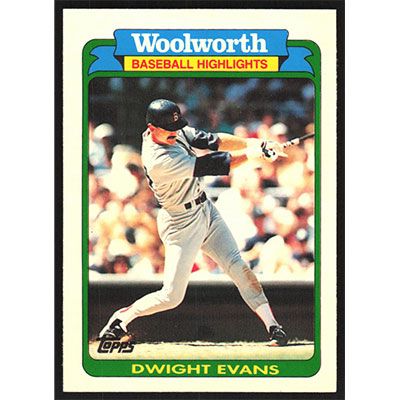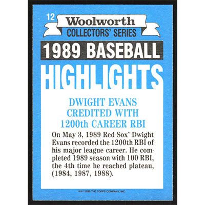 This is a 1990 Woolworth's Topps Dwight Evans baseball card. The card is #12 and pictures show condition.
