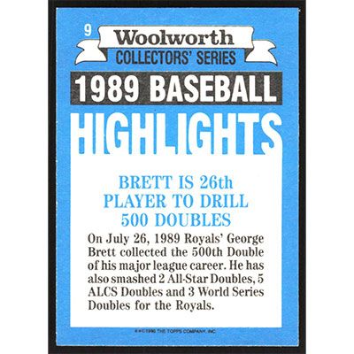This is a 1990 Woolworth's Topps George Brett baseball card. The card is #9 and pictures show condition.
