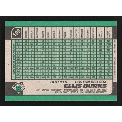 This is a 1991 Bowman Ellis Burks baseball card. The card is #109 and pictures show condition.