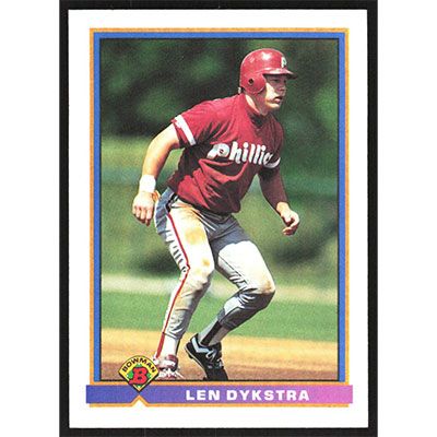 This is a 1991 Bowman Len Dykstra baseball card. The card is #501 and pictures show condition.