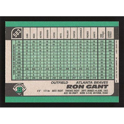 This is a 1991 Bowman Ron Gant baseball card. The card is #583 and pictures show condition.