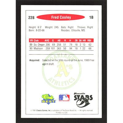 This is a 1991 Classic/Best Fred Cooley baseball card. The card is #228 and pictures show condition.