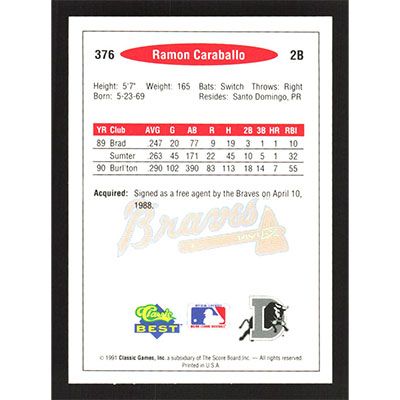 This is a 1991 Classic/Best Ramon Caraballo baseball card. The card is #376 and pictures show condition.