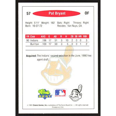 This is a 1991 Classic/Best Pat Bryant baseball card. The card is #57 and pictures show condition.