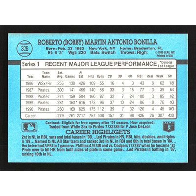 This is a 1991 Donruss Bobby Bonilla baseball card. The card is #325 and pictures show condition.